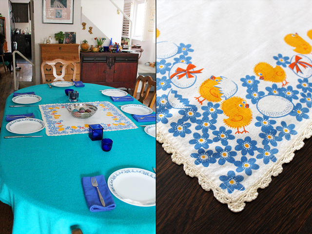 table-set-for-easter-and-vintage-printed-easter-tablecloth