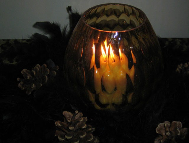 For a centre piece I just grabbed a few small branches, plunked them into a vintage pressed-glass jug, and hung some old silver Christmas ornaments on them. I thought it resembled coral. To further tie-in with the water/fish theme, I placed this on a tray that has shells embedded within it.