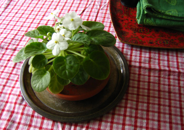 (The plates came courtesy of some guys hosting a garage sale at their art studio once, who at the end of the day, gave them to me for next to nothing because they thought it was funny that I actually liked them. There are six of them and a platter, each with a different platter. I previously photographed them here.)