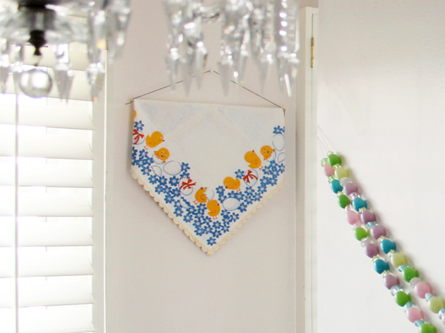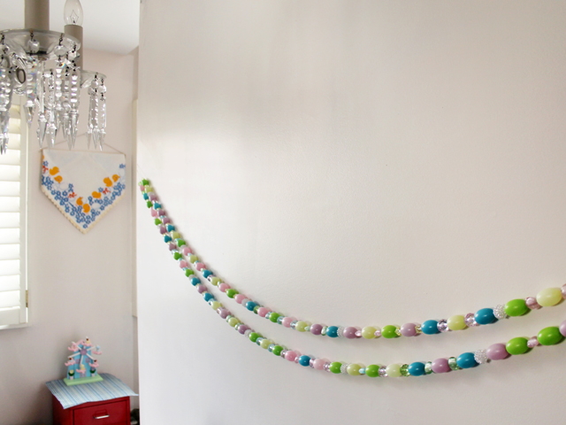 ↑ A combination of two diy projects, this branch and twine wall hanging, and these Easter bead and egg ornaments. ↑