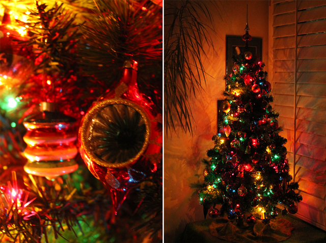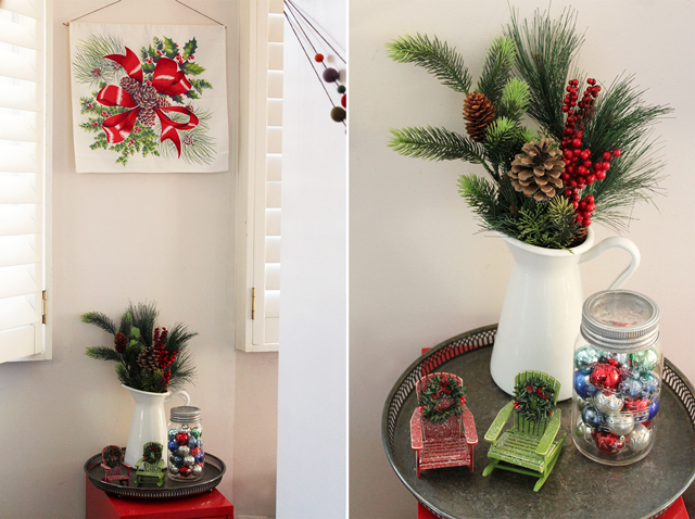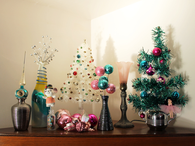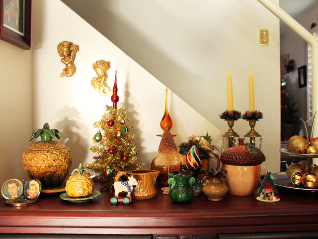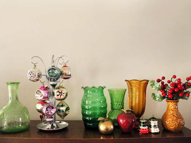 Hello! Yesterday I wrote about the vintage Christmas decorating pieces I’d found at the vintage stores. Today I’m here to show you how those things looked, in action, amoungst the things we already had.