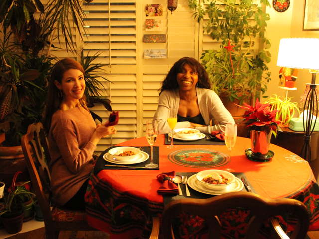There are also some shots taken during a little get together, when my friends Julie and Leslie came over for dinner. We were originally planning to get a little crochet lesson in (I’m teaching them both how), but alas, the chatting, food and bubbly wine got in the way and we never ended up getting the yarn out!