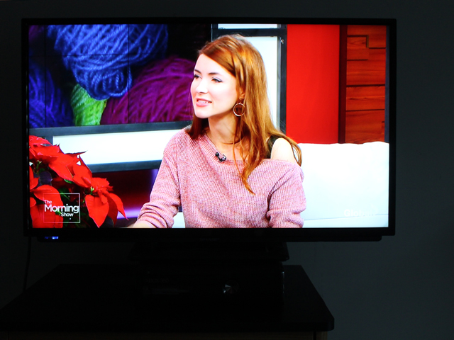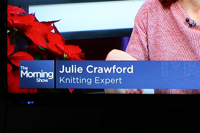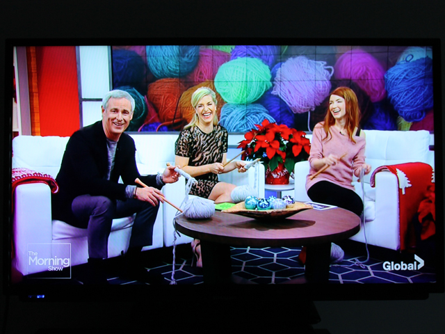 ↑ A photo of our tv. Wait a minute … who’s that? Yes, it’s Julie! She was on the Global Morning Show the next day, talking about the emotional benefits of knitting. (She’s a pro knitter, known to be at the forefront of the scene. See her blog here – Knitted Bliss). ↑