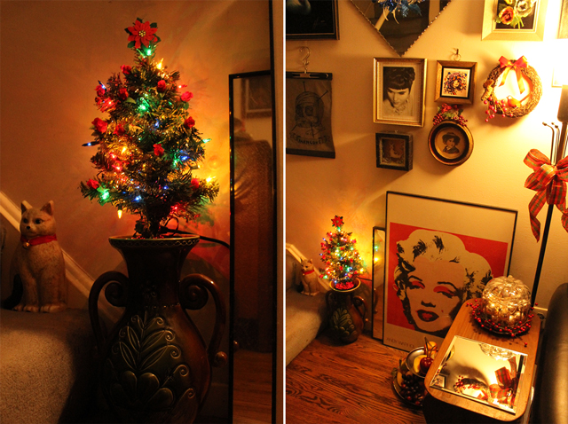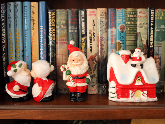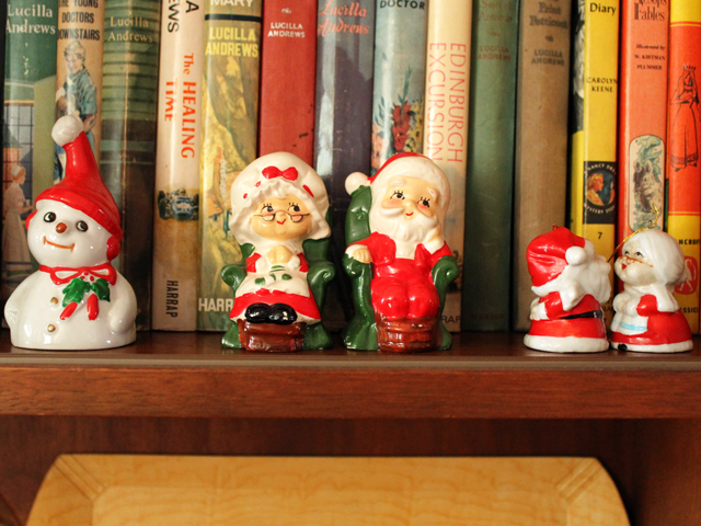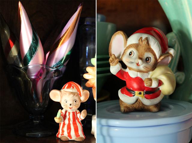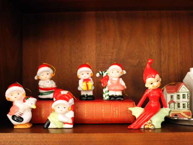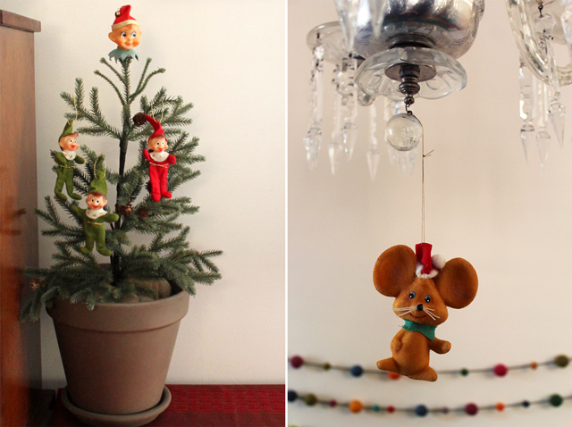 ↑ A reminder of the thrifted Christmas items I found this year, described and photographed separately in this post. Each piece shows up at least once in the photographs, so, if you’d like, you can try to spot them. ↑