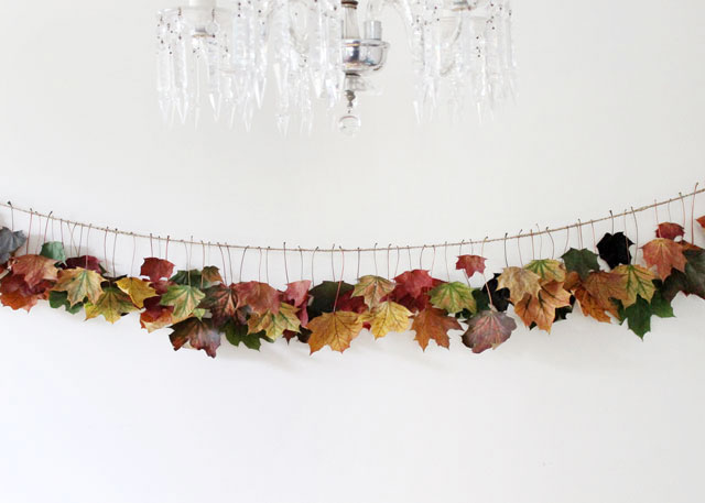 I like how this garland turned out. These vintage Christmas balls are huge! I bought them on ebay some years ago, and the vendor thought they had been originally used to decorate a department store tree. I’ve actually only ever displayed them one other time, because I wasn’t quite sure how to show them safely. Aside: When Nick saw me take them out, he earnestly advised me not to put them on the small tree. “Oh, really?!” lol. Anyway, I ended up hanging them on the twine chain, that I had used to make this Autumn display with the pressed leaves.
