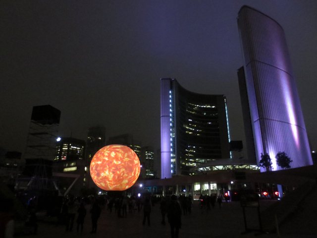 In this recent post I wrote about our adventures at this year’s all night art show, Nuit Blanche, mentioning that one exhibit I especially wanted to see wasn’t working when we arrived to see it at 4:30 in the morning. Luckily though, this was one of the three pieces that had an extended showing, so we had another chance.