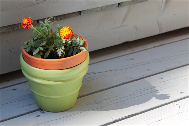 Being the loving cat-parents that we are, of course we set Ed up with his very own comfortable spot outside on the deck. He has a comfy blanket on a chair under the awning, dedicated to him alone. For a couple of weeks he thought this spot was fantastic and was found lounging there whenever we were hanging outside. Then one morning Nick went out and found another cat sleeping in Ed's spot! The nerve. This interloper was sent on his way, but now Eddie's spot is no longer good. He doesn't want to sit there anymore. I have the blanket in the wash to see if he'll go back to it.
