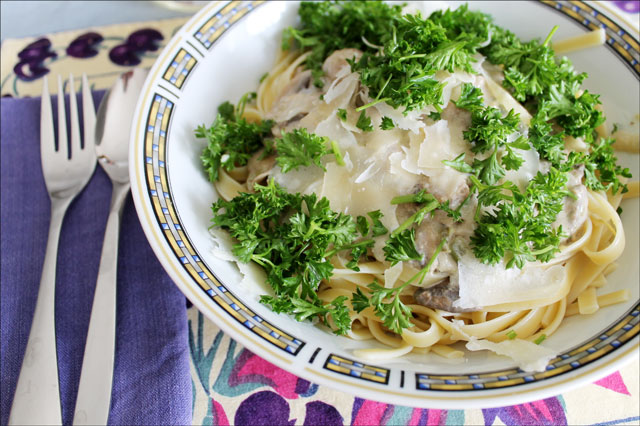 Here's a recipe for pasta with creamy mushroom sauce, with fresh parsley. Well it's not really a recipe ... more of a technique for making this type of sauce.