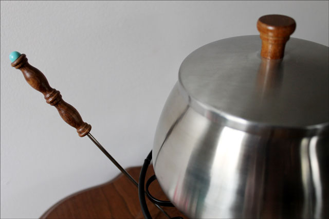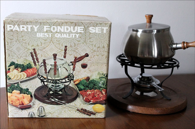 For this week's food post is about the little fondue party for two we had last Sunday, something we'd never done together before.The idea first came up with Nick telling me about how when growing up he and his family would have beef fondue for special occasions and how he loved it. I just happened to have a vintage fondue pot and some forks, which were unused and still in their original boxes. I had been given these as a gift from an ex's lovely mother. She knew I liked vintage things and nabbed these for me at a church jumble sale she was helping with. This was years ago and I held onto those fondue things, packing and moving them from apartment to apartment and finally to my home here. But they stayed in the packing box for years, until they were unveiled last week-end. Nick was quite surprised I had them and impressed with my fine fondue pot! After almost 13 years of marriage it's good to still have a few surprises.Part of the reason we had never used these things is that we're not big meat eaters. As an aside, unlike most people who are not frequent eaters of meat, who eat chicken but not beef, we are the other way around and do occasionally eat beef steak but not chicken. We're not overly fussy about the whole thing though, and eat whatever is being served when we are invited out to eat. But another reason I had never used this fondue pot I had was that I was afraid of the dangers associated with hot pots of boiling oil. Particularly being combined with a party of drinking people, which seemed to be the whole premise behind a fondue. It seemed like a party thing .. and the image on the box reinforced this thinking.