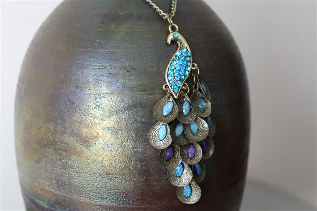 I thought I'd show you a few purchases I recently received from EBay. I'll start with the pretty item first, this peacock necklace. I so love the colours and the dangly bits and the crystal eye! I realize you can't tell the scale in these pictures .. the pendant is 3 1/2 inches tall and the chain is a long one. It has inspired the outfit I plan to wear out to see a concert tonight, so I'll hopefully have some pictures to show you of the necklace in action!