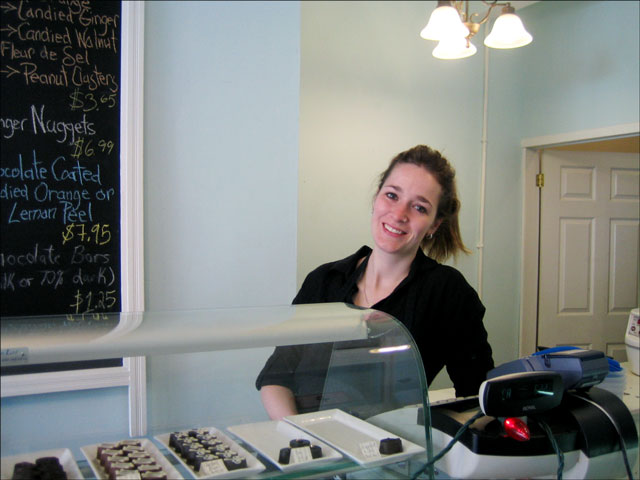 This store which sells only organic fair-trade chocolate, was actually Nick's discovery when he bought me a chocolate Santa for my stocking at Christmastime. Then he went back to get an assortment of chocolates as a gift for my mother, for me to take to her when I visited in February. I got to sample some of them when we carefully cut them in half so we could both experience the flavours. They were divine and very different, not at all filled with typical centres.