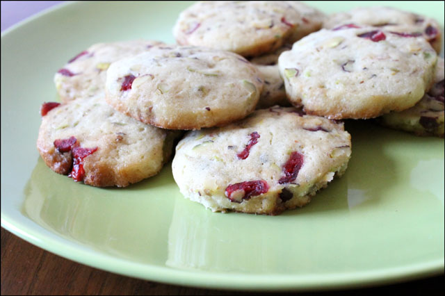 By the way, before I made these I didn't realize you could buy pistachios without their shells with no salt but I found them in a shop that sells nuts and seeds for baking/cooking. But if you can't find them, any nut can be substituted. In fact the cranberries can also be replaced with any dried fruit. I've made them with almonds and dried cherries and they were great.