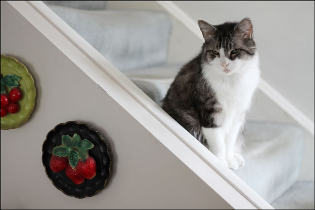 Eddie often pauses on his way down this staircase, just to take a moment to sit and think.