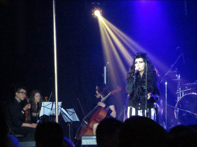 Patrizia is an accomplished 4-octive soprano singer, whose mission it is to "make classical music more mainstream and rid it of its elitist status by mixing it with other genres and updating it to relate to everyday people." She sings beautifully and opera-like while being backed by a really rocking band, including our friend on drums.