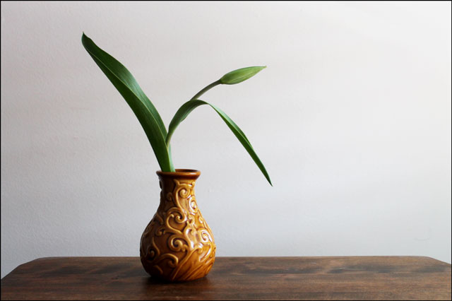 You can see some photos I took of the flowers and how I made greeting cards from them in this post, but today's post is about this particular random one which, before any of them had bloomed, I had found broken off by an animal. Not sure what animal but it could have been the same skunk that Nick shooed away from our front door only last night. Don't worry, it went away peacefully.