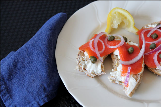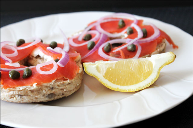 Welcome to the 'Foods That Were on Our Table This Week' Awards. Without further ado, I'll just dive right in.The award for ________ goes to ...Most Delicious Sandwich : Open-Face Smoked Salmon on a toasted multi-grain bagel, with cream cheese, red onion, capers and lemon juice.