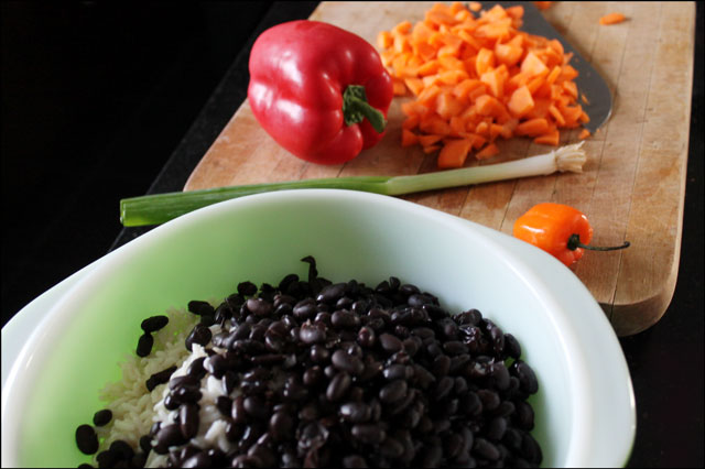 It can be made with left-over or freshly cooked rice, and the black beans can be canned or cooked by you.