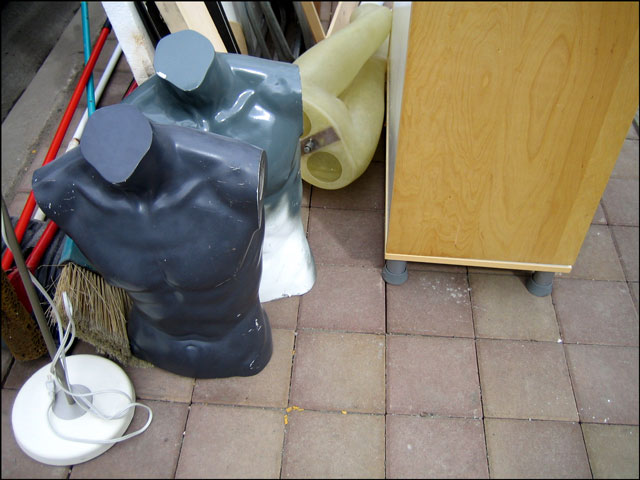 You know how when you see something once, you begin to see it over and over again? Now I know that two sightings does not a trend make, but I do think that it was very odd to come upon two situations within one week, where parts of mannequins were temporarily left in a spot where they could be photographed by me.