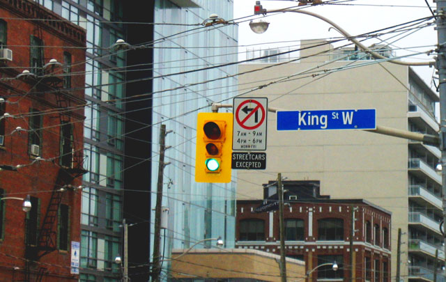 I went for a walk along King Street West, between Bathurst Street and Spadina. This is a stretch within "The Fashion District", though it might be a mystery as to why nowadays, as there is very little remaining to indicated it's onetime significance in the clothing industry. That's because the area has changed tremendously in the past decade, going from a series of garment factories with not much else, (aside from a strip-club and a budget motel), to an area hosting the most chic of restaurants and fancy private clubs.