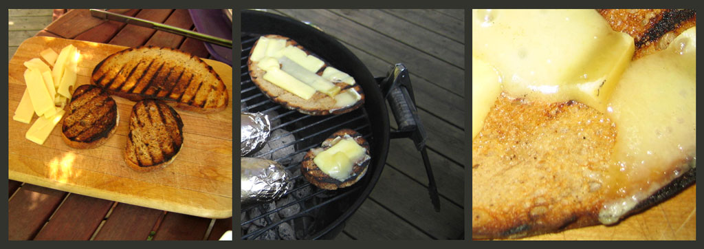Add your sliced cheese and return to the grill. Put the cover down so the cheese will melt. If you're using charcoal and it's pretty hot, try putting the toast around the edges of the grill, rather than directly over the coals.