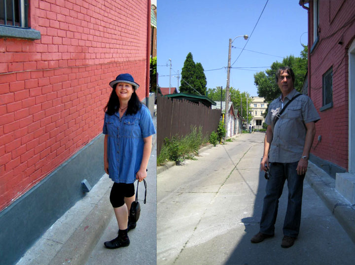 Today we took a walk through some alleys and back streets. I'm not sure if this is the case in other cities, however in downtown Toronto, you find these interesting back streets all over the place. Many homes have no driveway out front, and instead have a lane-way behind the house, which is how they get their cars in and out of their yards.