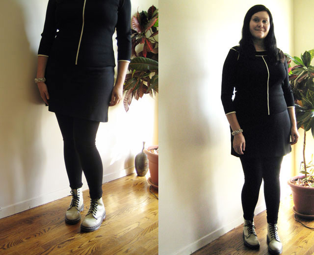 Today's post was motivated by my white patent-leather Doc Martin boots, that I got in London a few years ago. We can't get many different styles of Docs here in Toronto, so I made a special trip to the home-store of this brand while visiting London. It was the middle of the summer and I got two pairs of boots towards the beginning of our trip. Then I had to carry them around for the rest of the trip! But it was worth it, especially for the second pair which I will show you during the winter, because they are outdoor winter boots, which I really love. And I have never seen another person with the same ones! (I have seen these white ones in a magazine once though.)So without further ado ... Black, White and Silver ...