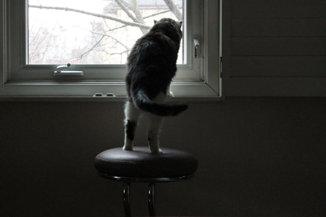 And when someone is actually coming inside, he is right there to greet our company. Even if they are only there to give us a quote on fixing the fence or something ... they sure better like cats once they step through the doors.
