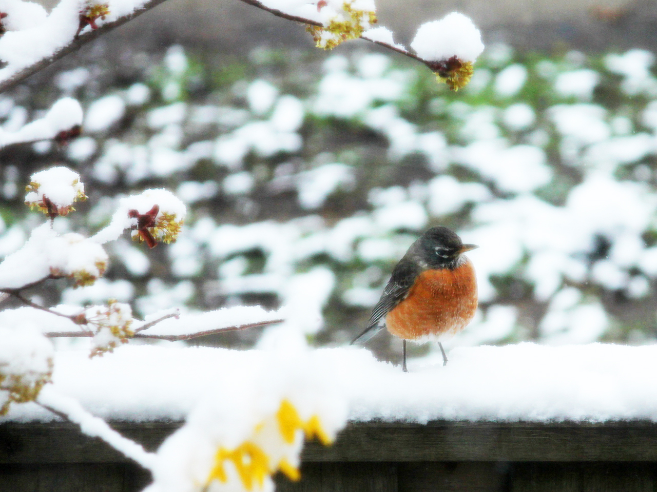 These shots were taken yesterday, April 21st. While we've certainly had snow on the flowers before, I can't recall ever seeing a snowfall as abundant as this one, this far into the year. When we were warned about it in the weather forecast the day before, we couldn’t imagine that it would happen to the degree they said it would. Then, we awoke the next morning to so much snow!