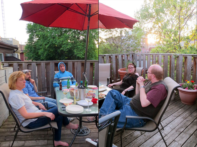 Issy and her flatmate Barb hosted a lovely outdoor party on their deck, which is situated way up high on the top floor of the old home in which live. The setting was perfect and it was a beautiful night for an outdoor gathering.
