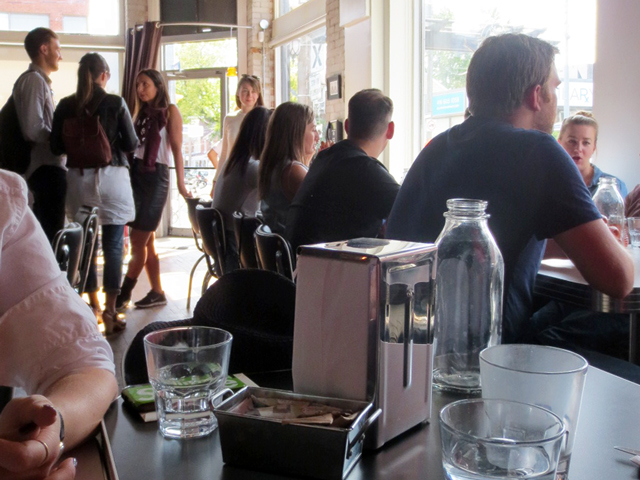 I recently posted a picture of me sitting on a bright red bench (see it here) outside a restaurant called Old School, located at 800 Dundas Street West, at Palmerston. I mentioned in that previous post that I wanted to try it out and I got my chance on Sunday when Meghan, Pam and I went out for a late lunch to celebrate Meghan's birthday.
