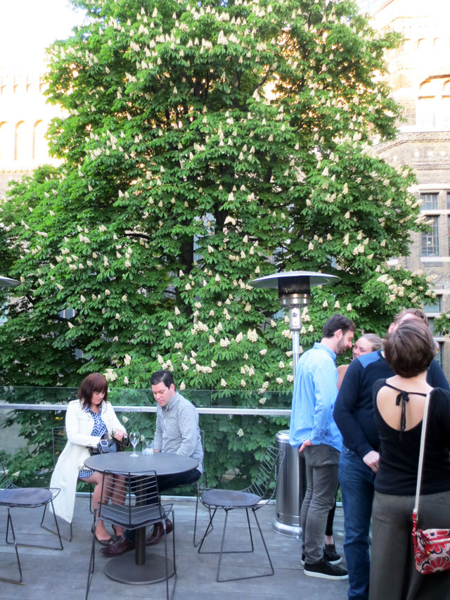 We arrived early enough to have a drink outside on their balcony, which is high up off the ground. The massive chestnut trees surrounding it were in flower.
