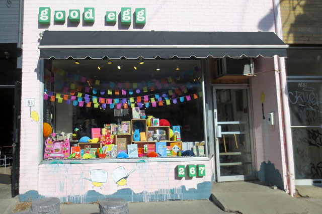 A week ago Sunday was a nice sunny day, so we hit the streets with Andrea. We ended up walking along Spadina, going out for lunch and then checking out a cool shop that Andrea had recently been to getting a baby gift for a friend. Good Egg is a place that she thought we'd really like and she was right.