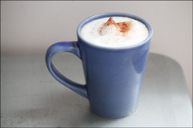 He usually has his coffee alone in the mornings but on this day he had company, making me a cappuccino with his special recipe for