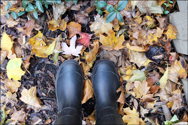 I mentioned the other day that Nick and I spent some time out in the yard last week getting things ready for winter. There were leaves to rake, bushes to prune, plants to move and tulip bulbs to get into the ground. Oh yes, and there was some champagne to drink too. Mud on our boots, dirt on our gardening gloves and refreshments enjoyed in a fancy glass!
