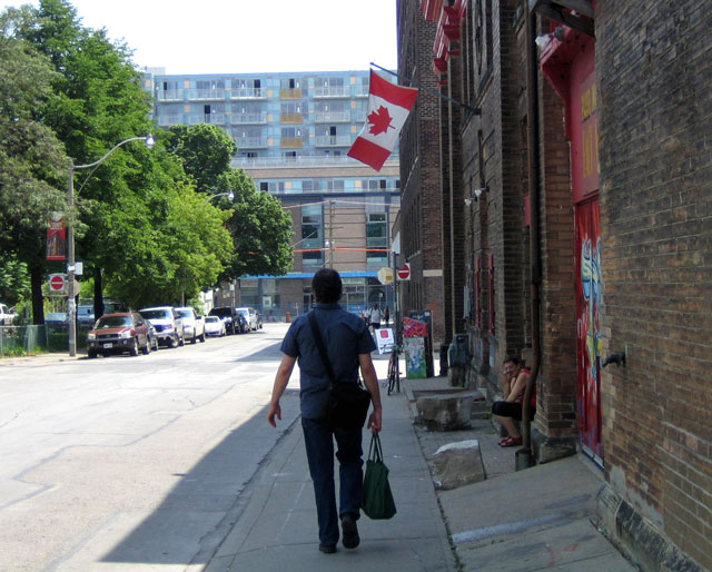 On our way home from the market last week, we passed this building that I've walked by many times before (located at 16 Ryerson Avenue, just East of Bathurst Street and north of Queen Street West).  But this time I took a photo because they had their Canadian flag out in honour of Canada Day on July 1st.