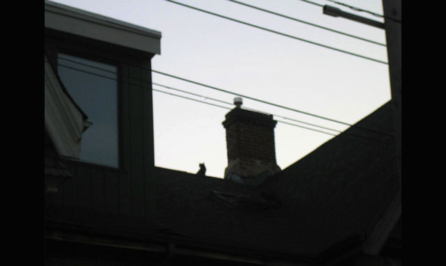 On the way over, Nick took this one quick picture. (He's not very keen on standing in the street and taking photos, so I have to move fast and usually only get one or two shots to choose from.) At the moment that the shutter clicked, a howling cat fight broke out on the rooftop across the road. That's why I'm looking over there!