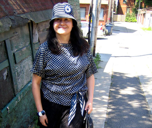Today we walked to Kensington Market for some fresh food shopping.  Aside from stores selling fresh foods and restaurants and cafes, this part of town hosts a whole street filled with vintage clothing shops.  We didn't stop in at any today though, but I've been shopping these stores since I was a teen. A particularly enchanting one is "Courage My Love", the balcony of which is in one of the pictures (with the manikins).