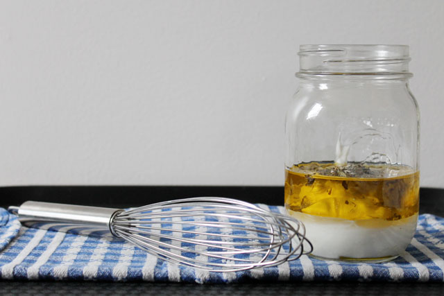 Back in January our friend Andrea came over for dinner (posted about here), and I made a salad as an appetizer that turned out really tasty. It was dark out by the time we sat down to eat though, so I was unable to get a decent (aka: appetizing looking) photo of the salad with the electric lights that we needed turned on.