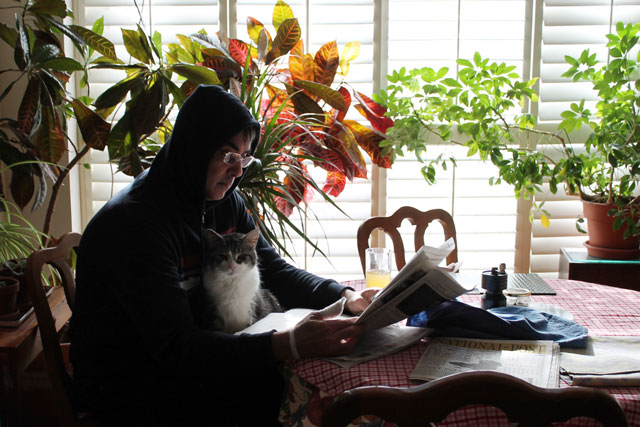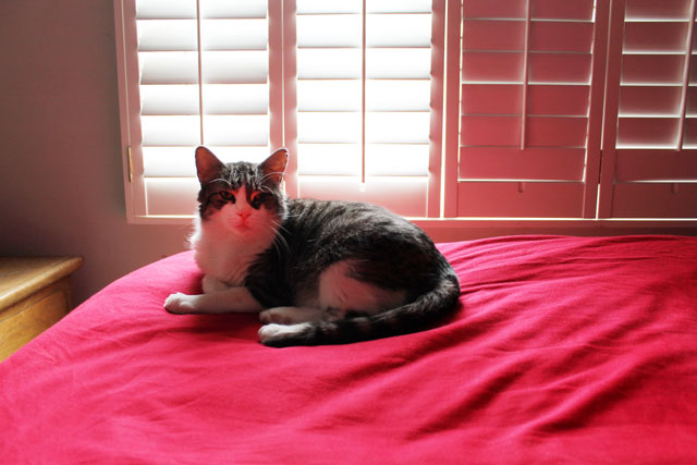 Eddie decided to stay in bed for a while after we got up. We all love our red cotton flannel sheets. So cozy.