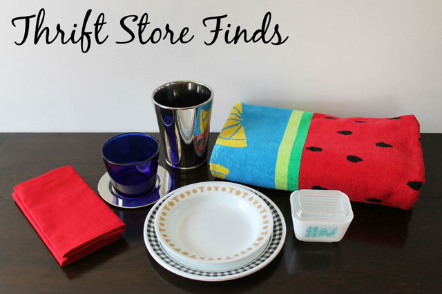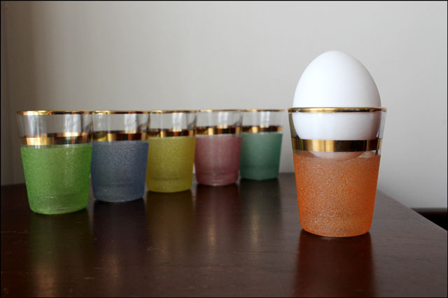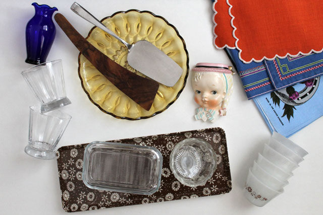 [For fellow thrift-store shoppers who like to see Thrifted Things in action : Eddie’s towel is the one I got during this thrifting trip. The red napkins were from this thrifting trip. The vintage glass dish with the cheese in it is from this thrifting trip. And the Fire King custard bowls used as finger-bowls were from this thrifting trip. We also used the milk glass bowl with a handle to serve the sour cream, from this thrifting trip but it didn’t make it into the pictures.]