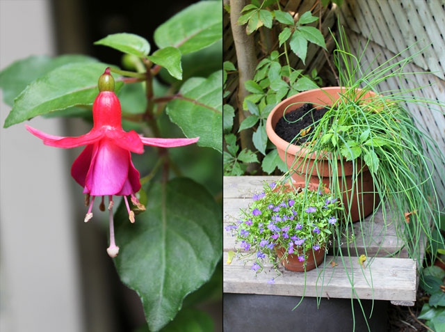 ↑ There are some of the flowers in pots that are still blooming. As mentioned in this post that blue frothy one (called a Lobelia) is still going strong. It has been in full flower for the nearly three months that it’s been out there. ↑
