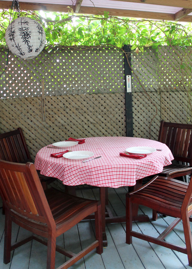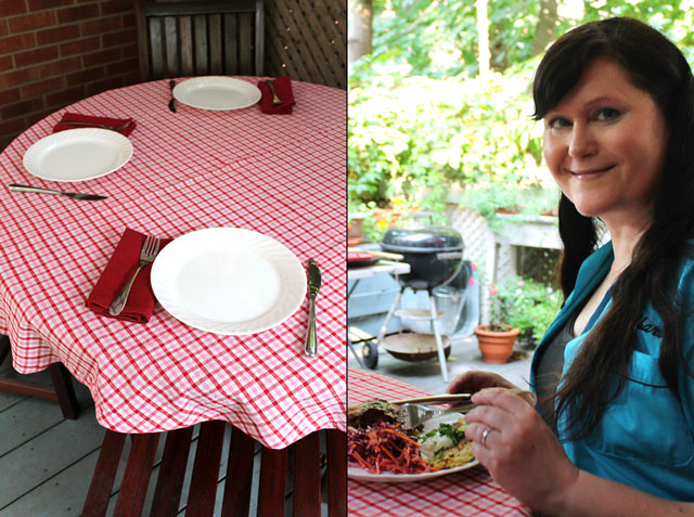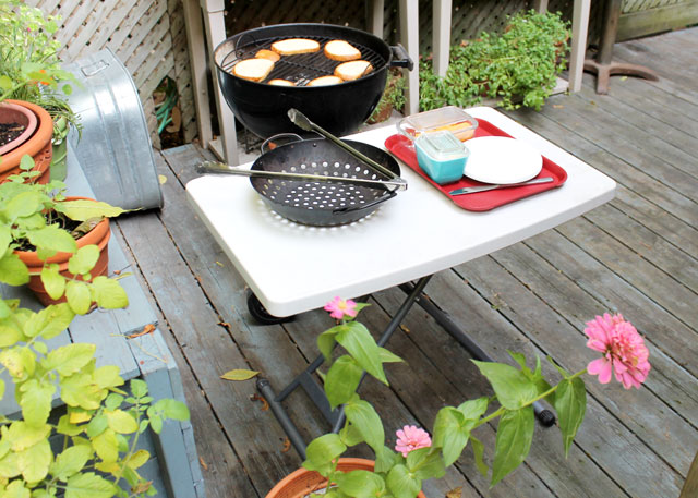 When we spotted some light on the horizon in the form of a forecast indicating that Saturday was going to be nice, we decided it would be a good day to cook and eat outside. Our friend Andrea joined us, and true to the meteorologist’s word, it was lovely out for this last Saturday of summer based on the calendar.