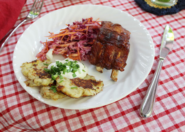 The Potato Pancakes were topped with sour cream and green onions from the garden.