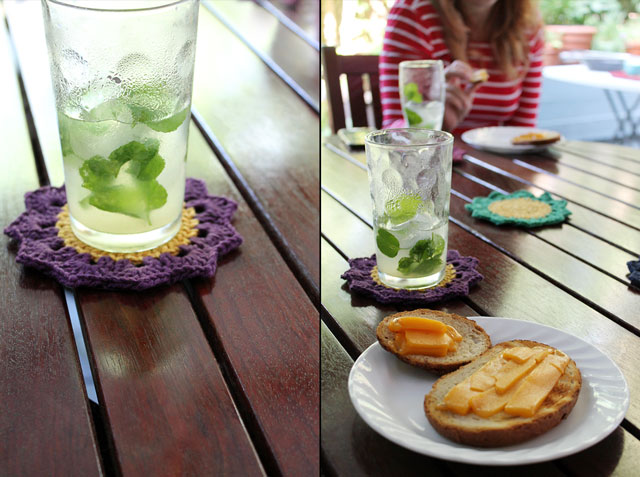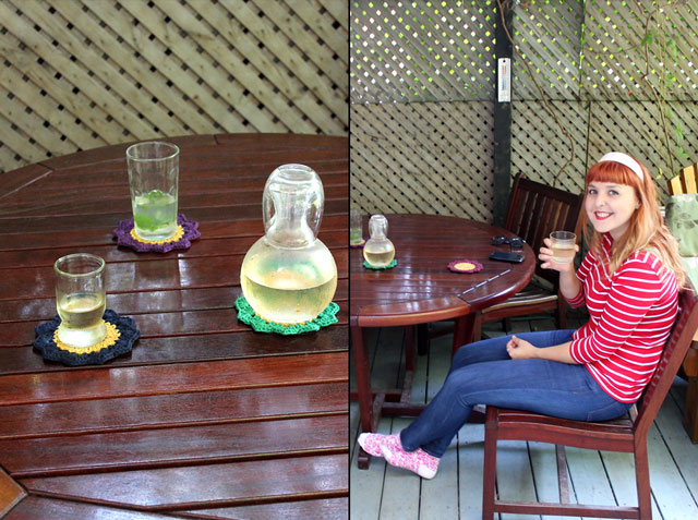 How about those colouful coasters? Those are the ones I crocheted and added a waterproof backing to, shown in this post.