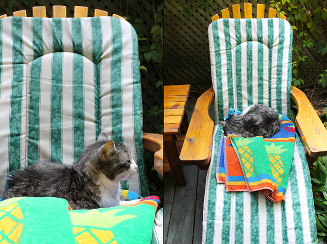 Following the meal we retired to the sitting room, aka the Muskoka lounge chairs. We had to ask Eddie to please make some room, which he begrudgingly did.
