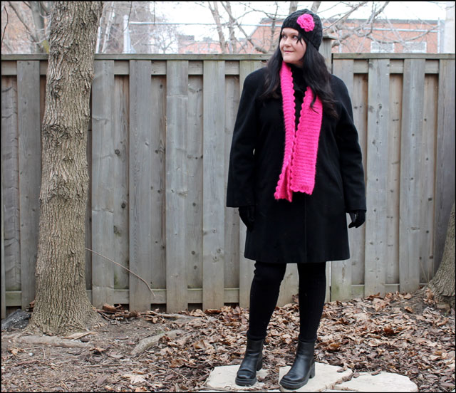On Sunday, the weather was clear but still freezing cold. We took a walk to the grocery store. I had suggested that Nick wear a hat but he decided to brave it, and then had to pull the hood on his hoodie. I was wearing this hat.