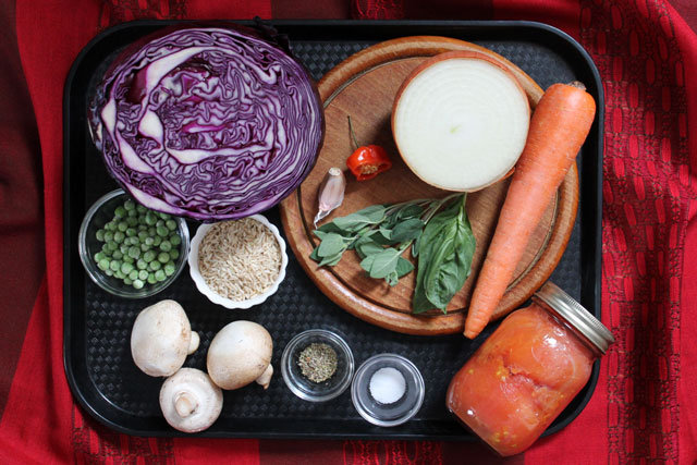 As far as the vegetables go, in addition to the cabbage, onion and tomatoes (either from a can or jarred at home) which you need, I add Mushrooms, Carrot, and Green Peas but feel free to add what you like.