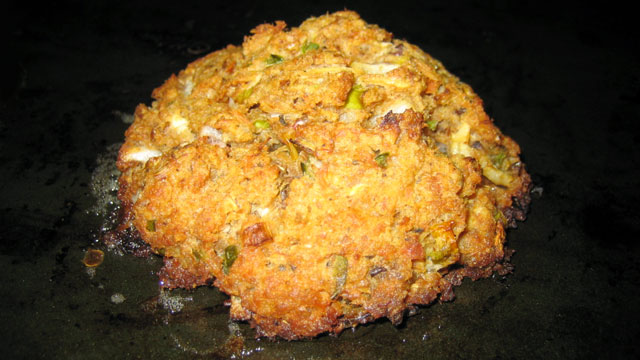 Place on oiled baking sheet and bake in preheated 350 degree oven for about 30 minutes, until crispy on the outside.