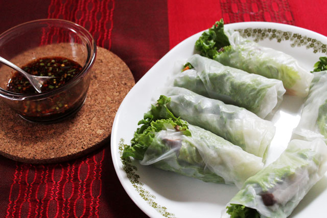 [Edit : I’ve since posted a delicious sauce that goes well with these spring rolls here.]