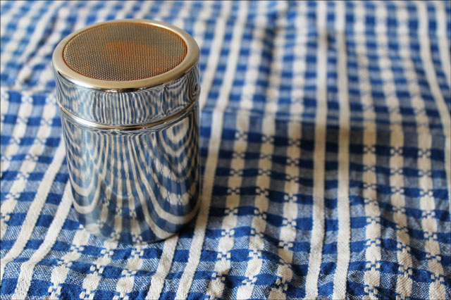 I bought him this stainless steel flour shaker (from Lee Valley) for Christmas, with the thought that he’d use it as intended, for flour, when he’s baking. However, he immediately put it to use for something else. Over the past 4 months he has tweaked a seasoning mixture to sprinkle over a cup of coffee, that adds so much flavour that it reduced the amount of sugar I use!